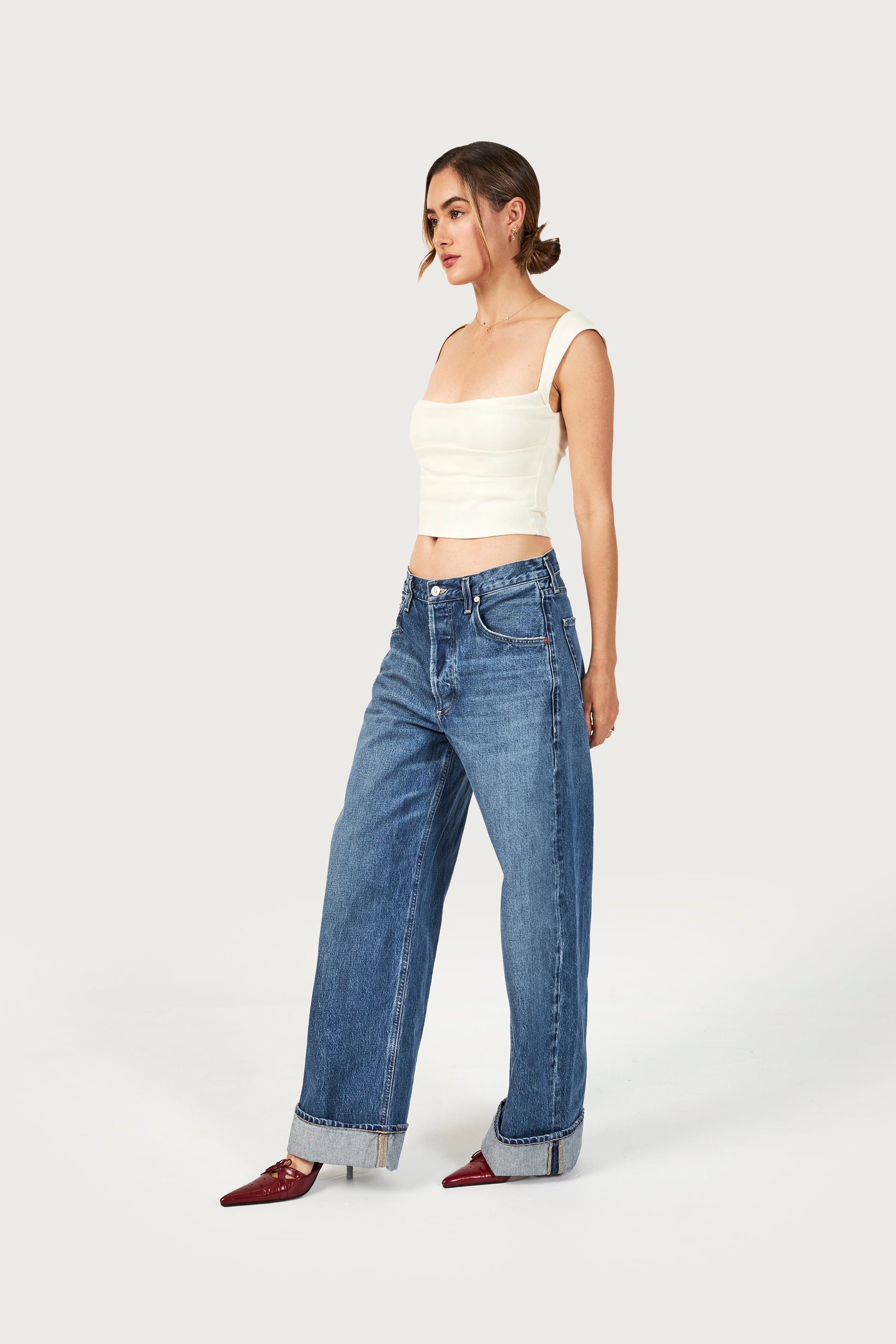 Fit Notes: Alexandra is 5'8" and wears size XS. (Bust: 31”, Waist: 24", Hips: 35") True to size. For more coverage at the bust, size up.