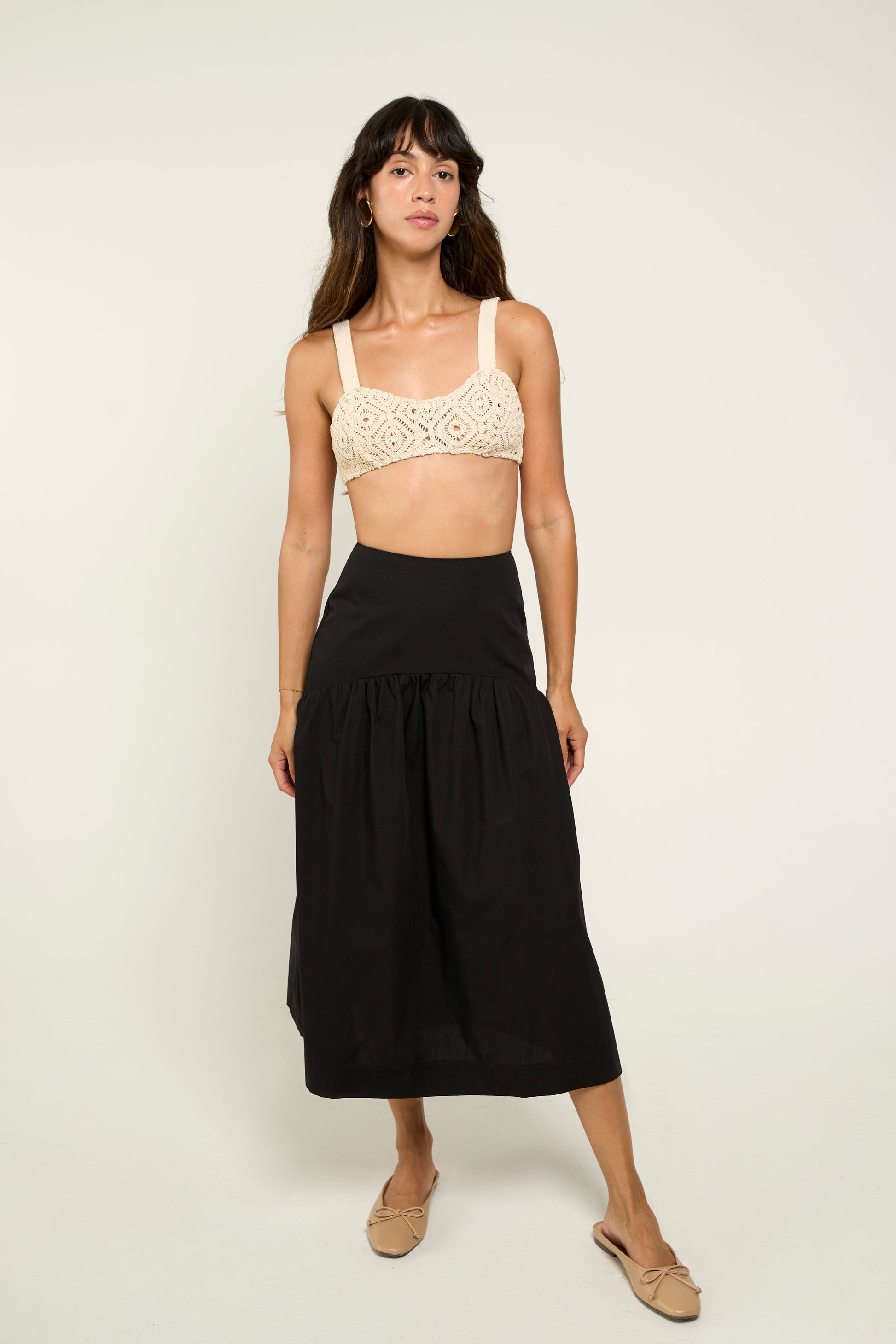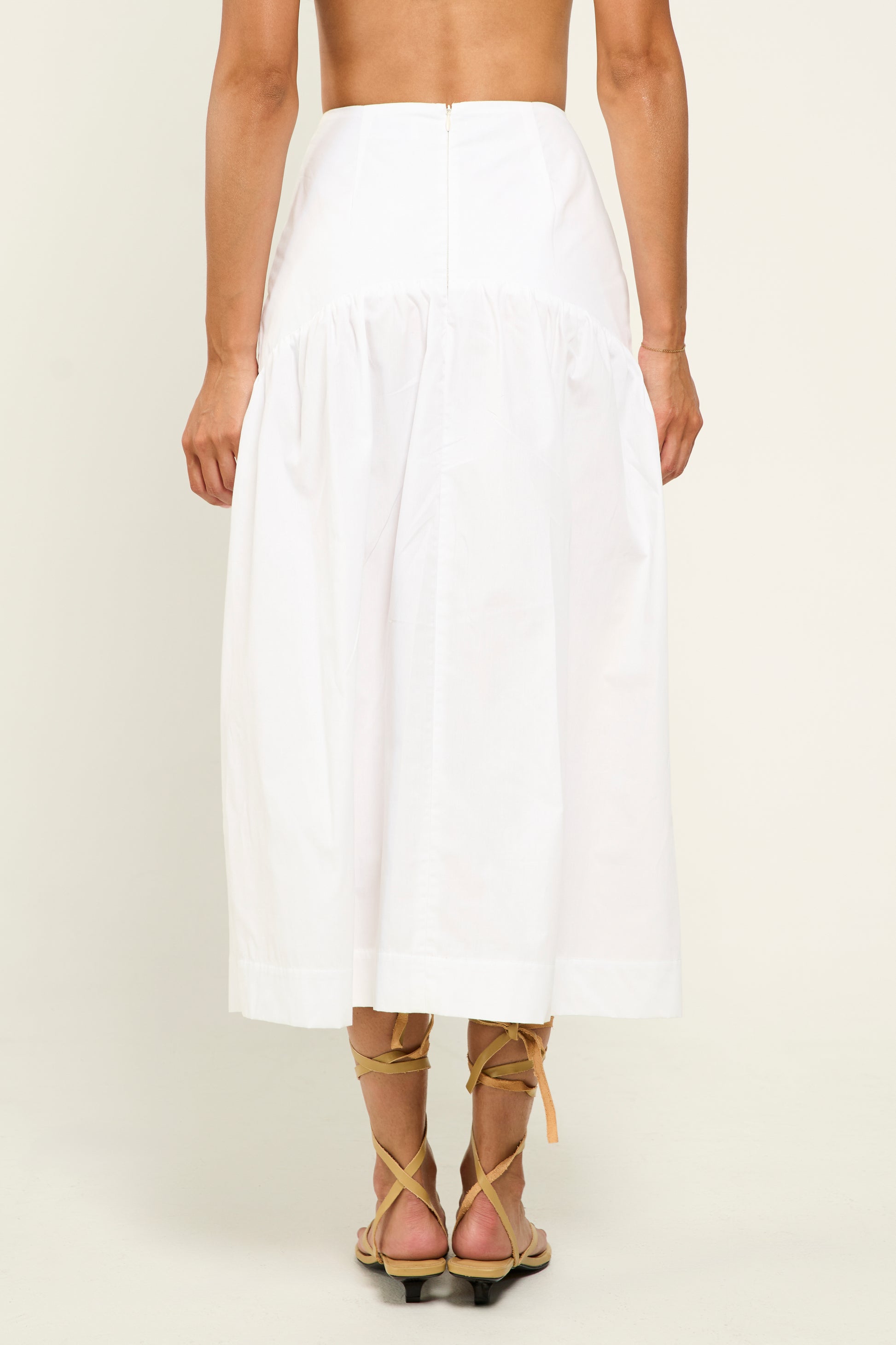 Description: The LUCIA MIDI features a classic drop waist design. A midi length that can easily carry you from the summer heat into the cooler autumn weather. Crafted in a lightweight cotton poplin fabric. Easy to hem.